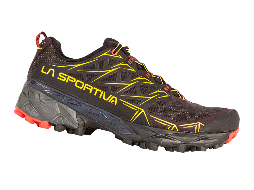 La suela ha sido desarrollada por el departamento de I+D de La Sportiva y cuenta con la nueva banda adherente FriXion XT con Impact Brake System; diseño exclusivo con tecnología Trail Rocker que favorece el apoyo natural “talón externo-punta interna del pie durante la carrera. Amortiguación, protección y confort, 3 partes de una geometría perfecta: el origami, el cual se inspira el diseño del calzado. Con Akira correr es un arte.