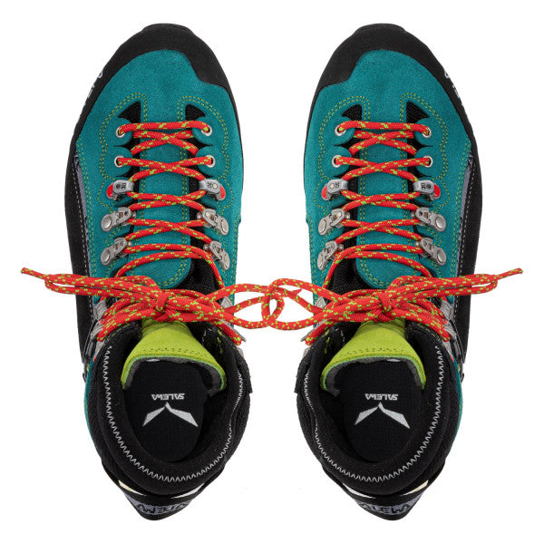 Una bota de montañismo alpino para mujer a través de Ferrata y raquetas de nieve con una parte superior de ante Perwanger y protección impermeable GORE-TEX® Performance Comfort.